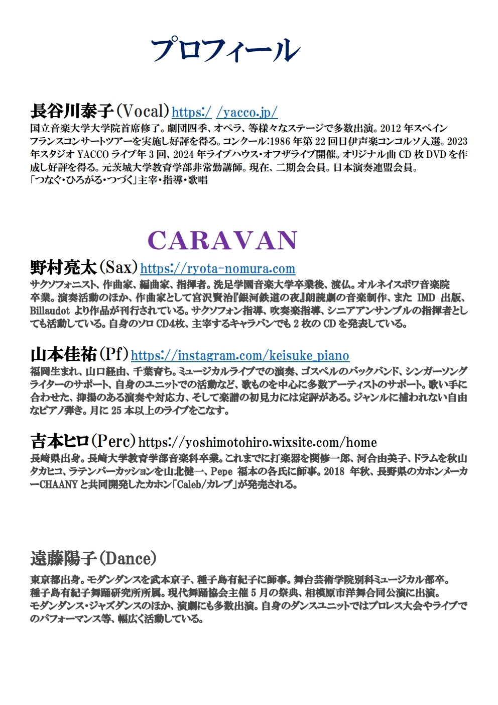 YACCO会は年会費という制度ではなく、常時寄付を受け付けております。長谷川泰子さんの音楽活動をサポートする会です。一口千円からご入会いただけます。会にご寄付下さった方は、会員として登録されます。