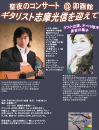さて、12月23日午後2時ごろから、志摩光信先生のコンサートを卯酉館で開催予定でございます。